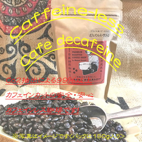 『カフェインレス・サントス』(ブラジル産)カフェイン99%以上カット、安全/安心/de'cafe